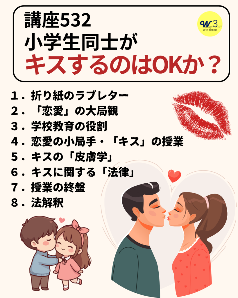 講座560 小学生同士がキスするのはOKか?(アニメ編) by 水野 正司 · 2026年2月28日 講座532 「小学生同士がキスするのはOKか?」を90秒のアニメにしてみました。 YouTubeとインスタとXに動画を投稿しています。 インスタ 原典:講座532 小学生同士がキスするのはOKか? 💕新着通知サービス ■「寄付」について 投げ銭をする