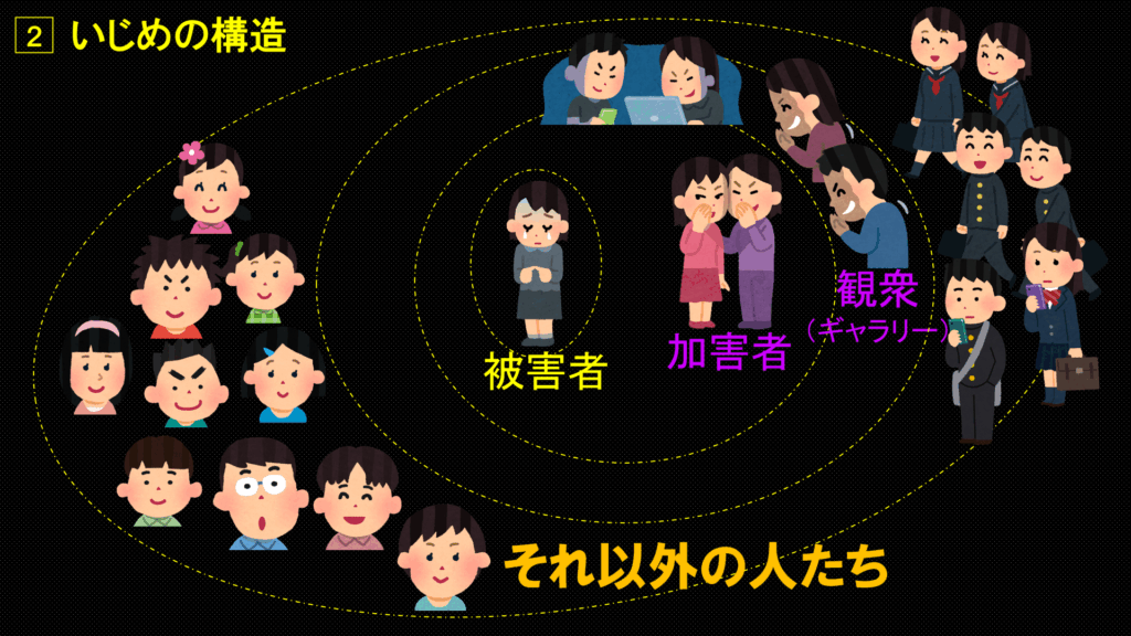 そして、いじめには「四層構想」と言われる仕組みがあります。