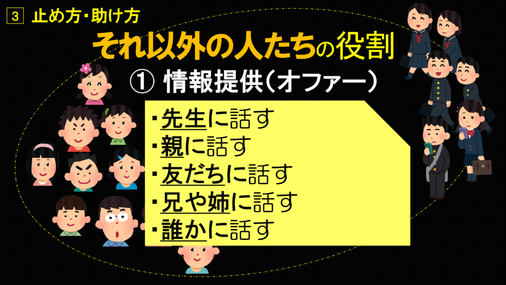 これは「いじめの止め方・助け方」を教える授業です。