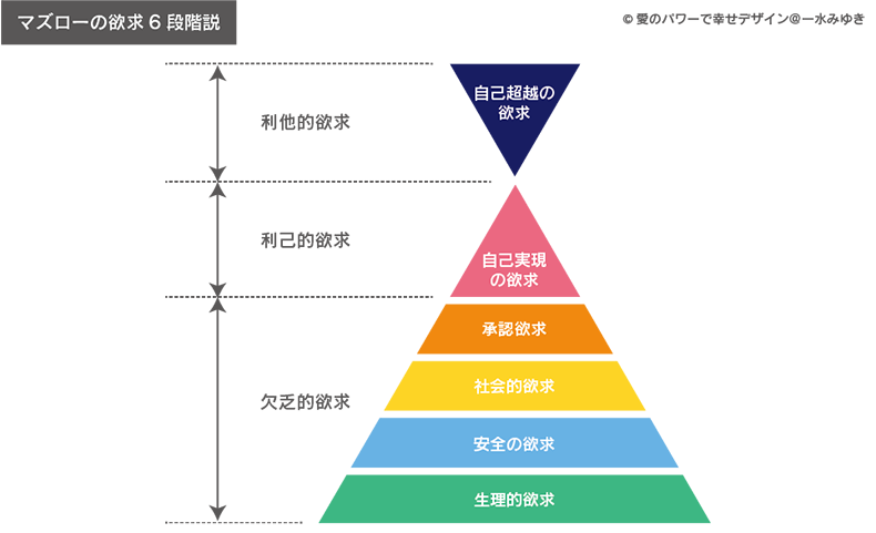 マズローは晩年に欲求段階説を6段階にアップデートさせました。